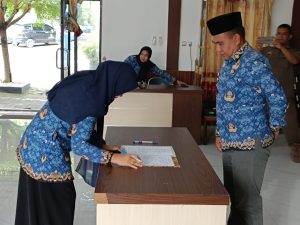 “Penandatanganan dokumen dalam hal ini Perjanjian Kinerja ini sehubungan dengan pergantian tahun anggaran yang baru ini berisikan indikator kinerja yang telah dibahas dan disepakati oleh bawahan dan atasan Perjanjian Kinerja juga merupakan acuan penilaian kinerja setiap ASN untuk periode tertentu, jadi bukan hanya tanda tangan saja” Jelasnya.